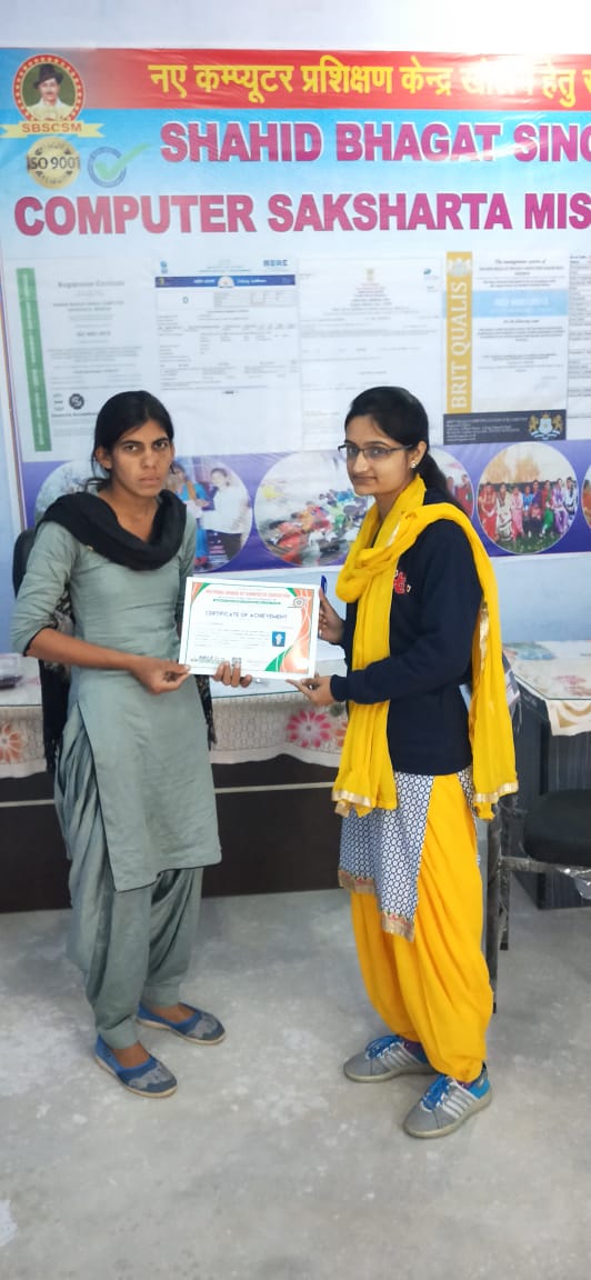 SHAHID BHAGAT SINGH COMPUTER SAKSHARTA MISSION, registered Maintained Under Section 59 Indian Partnership Act, 1932 & SBSCSM is also registered for Ministry of Micro, Small & Medium Enterprises ( UAN No. HR02D0000787 ).